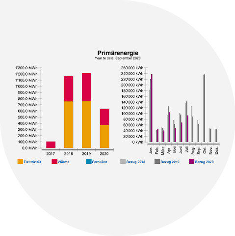 Die Überwachung und Einhaltung von Labels und Zertifikaten ist dank dem Energiecontrolling einfach realisierbar. Energiekennzahlen können visualisiert und mit Grenzwerten verglichen werden. Der Performance Gap (Abweichung von Planung und Realität) wird dadurch offengelegt.